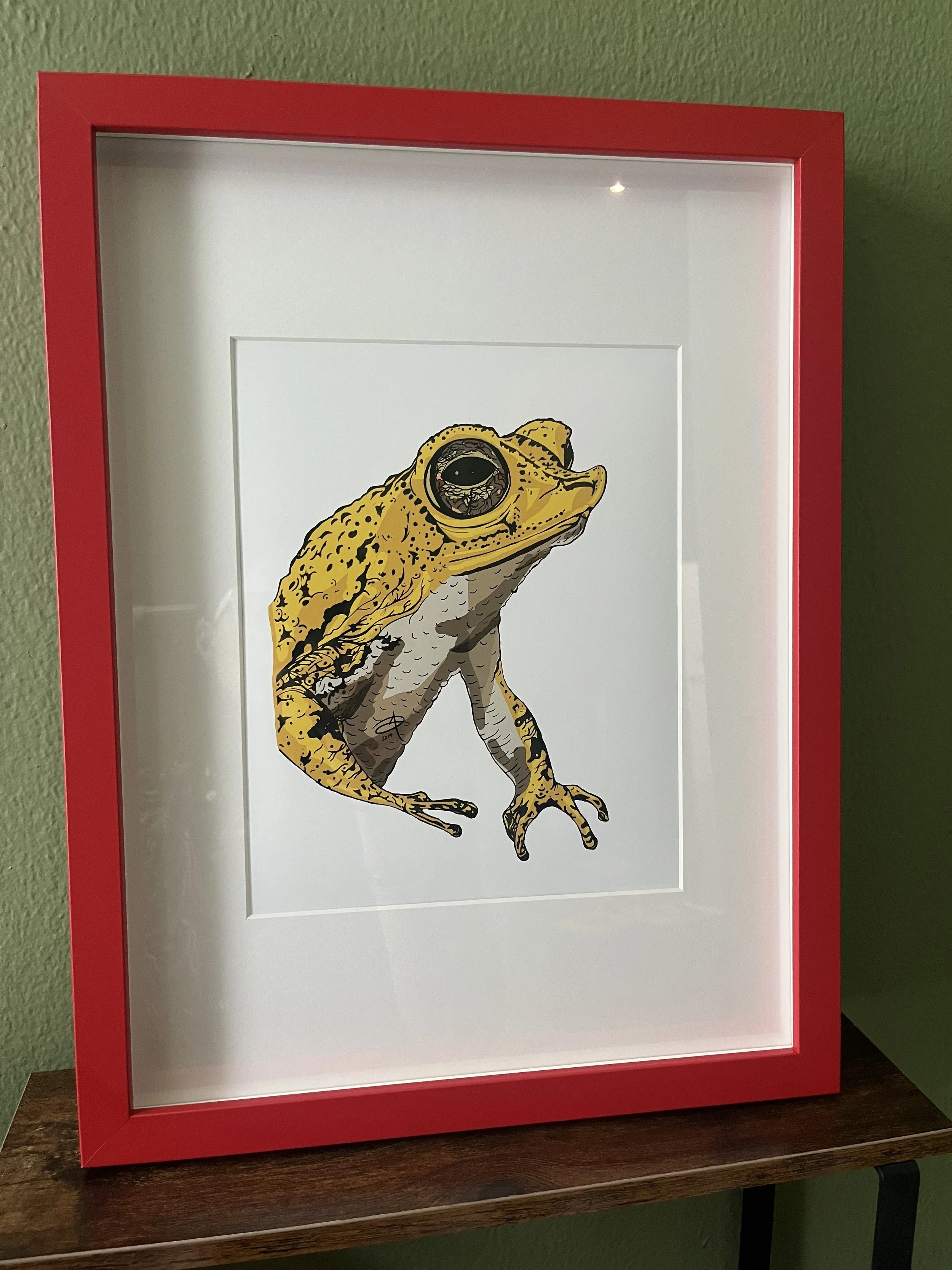 Científicamente precisa y artísticamente audaz, es una ilustración de estrella única. Ya sea que la regales o la reclames, tu compra también apoya las iniciativas de conservación de sapos. Ayuda a proteger la biodiversidad de Puerto Rico mientras exhibes una obra de arte local atemporal.